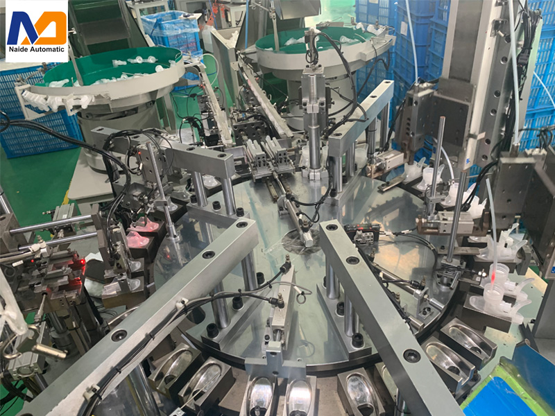 設備是主要針對噴霧器行業開發制造的全塑槍噴霧泵頭的組裝。該設備主要是為槍體,罩殼,吸管3件的全自動組裝機。全套全塑方槍共計有5套自動化組裝。目前產能可做到一分鐘60-90個,操作遠遠比以前的設備簡單靈活。